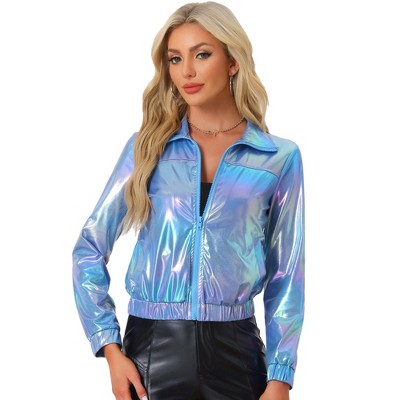 Shimmering holographic and metallic fabric is unique and shows your character. It's also outstanding among the public. Add an instant layer of partygoing charm to any look with this jacket in the shimmering metallic, which is your new warm-up must-have item. A bold metallic design lends a distinctive style to this jacket featuring a hood to stave off the breeze. This jacket can easily be worn every day with any outfit! The zipper in the jacket can also be easily dressed up or down. Simply pair it with a t-shirt or camisole and shorts for day to night, and you will be a mostly bright one.