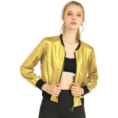 INSPIRE CHIC Women's Holographic Shiny Long Sleeve Zipper Hooded Metallic Jacket Gold Small