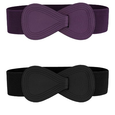 INSPIRE CHIC Women's Interlock 8-shaped Buckle Elastic Faux Leather Stretch Waist Belt 2 Pcs Dark Purple 68.6x6cm/27x2.36"(LxW)