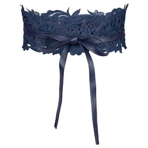 Allegra K Women's Lace Wide Waist Belt Wrap Around Obi Croset Belts Bowknot 1 Pc Navy Blue 65-80cm/25.59-31.50"