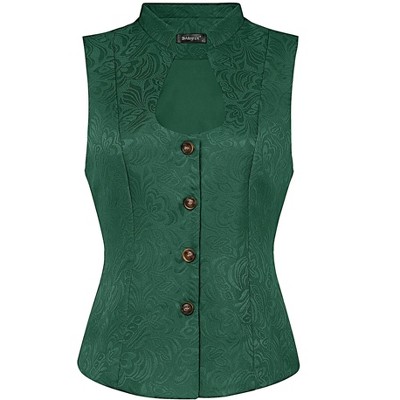 INSPIRE CHIC Women's Lapel Collar Dressy Versatile Racerback Waistcoat Suit Vest Sea Green X-Small