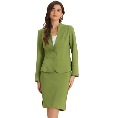 INSPIRE CHIC Women's Long Sleeve Collarless Peplum Blazer and Pencil Skirts Suit Set 2 Pcs Medium Dark Green