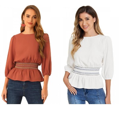 Allegra K Women's Long Sleeve Scoop Neck Casual Peplum Shirt 2 Packs - 2 of 4Allegra K Women's Long Sleeve Scoop Neck Casual Peplum Shirt 2 Packs - 3 of 4Allegra K Women's Long Sleeve Scoop Neck Casual Peplum Shirt 2 Packs - 4 of 4
