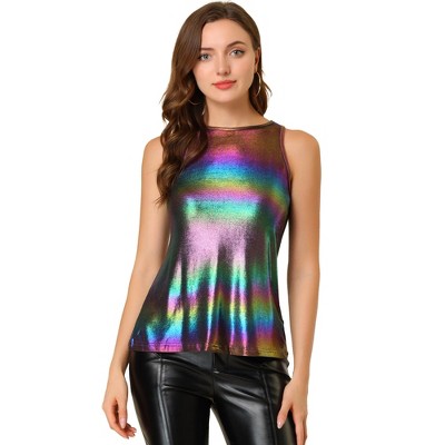 Allegra K Women's Metallic Shiny Party Deep V Neck Spaghetti Straps Cami Tops