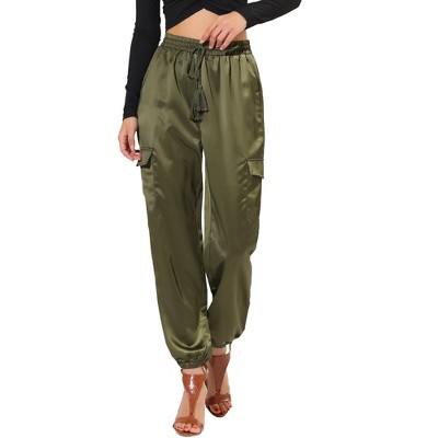INSPIRE CHIC Women's Metallic Shiny Sparkle Elastic Waist Pants