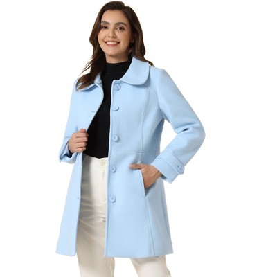 INSPIRE CHIC Women's Notch Lapel Double Breasted Belted Mid Long Outwear Winter Coat Lake Blue Medium