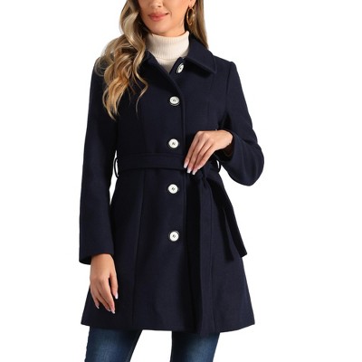 Allegra K Women's Faux Suede Notched Lapel Double Breasted Trench Coat with Belt Small Dark Blue
