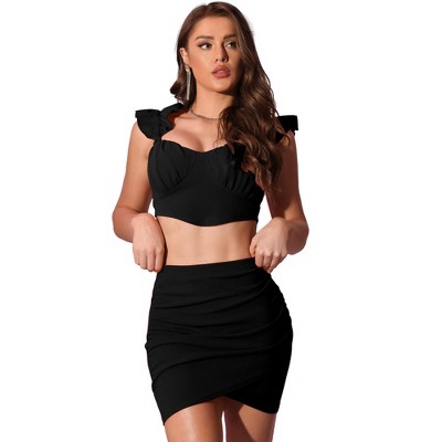 INSPIRE CHIC Women's Outfits Plaid Tweed Short Blazer and Skirt Suit Set 2 Pieces Medium Black