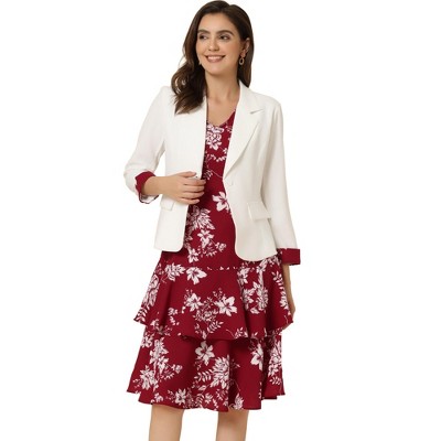 INSPIRE CHIC Women's Outfits Plaid Tweed Short Blazer and Skirt Suit Set 2 Pieces Large Red