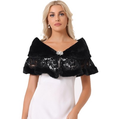 This gorgeous, luxurious faux fur shawl wrap with brooches, is elegant and charming
