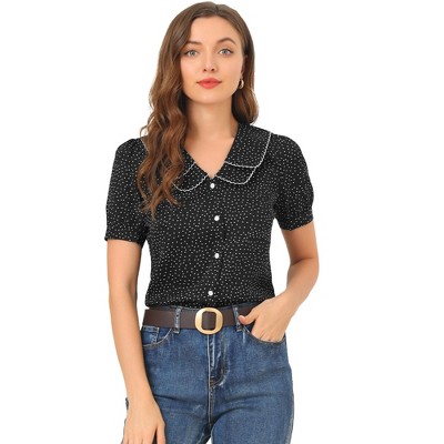 Allegra K Women's Peter Pan Collar Puff Short Sleeve Button Chiffon Blouse