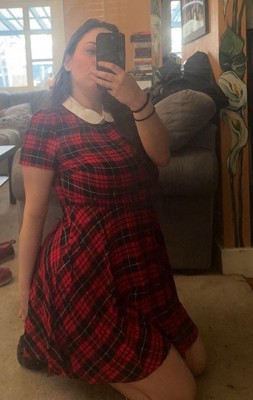 This dress is the perfect way to dress for every occasion! Featuring a Peter Pan-inspired contrast collar, a plaid print graphic, and short puff sleeves. A contrast doll collar adds sweet cuteness to this plaid dress. A contrasting Peter Pan collar adds a touch of classic preppy style to this plaid dress. This preppy style with normal sleeves is the perfect look for every occasion! Soft fabric ensures all-day comfort. It's the perfect choice for weekends, vacations, and everyday wear. Add a little schoolgirl glamor to your wardrobe with this Peter Pan dress.