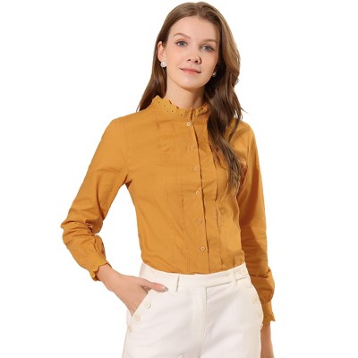 Allegra K Women's Plaid Puff Sleeves Vintage Summer Gingham Blouse Small Yellow