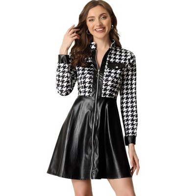 The houndstooth plaid dress with sleeveless accents flatters your silhouette. Cut from stretch knit fabric and featuring a round neck, a-line, and above-knee length. Offer a clean and polished look for the day with this dress. Wear yours with heels for an elegant look, whether you're in the office or out on the town, this dress is perfect for any occasion. Iron at Low Heat.
