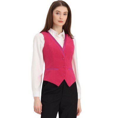 INSPIRE CHIC Women's Plaid Vintage Notched Lapel Collar Single Breasted Waistcoat Vest Medium Pink