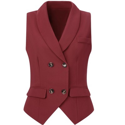 Allegra K Women's Plaid Vintage Steampunk Waistcoat Suit Vest X-Large Red