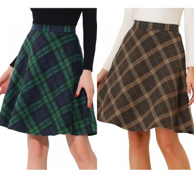 INSPIRE CHIC Women's Christmas Plaids Vintage Tartan Elastic Waist Knee Length A-Line Skirts - 1 of 4