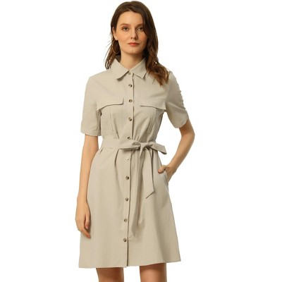 The casual, elegant look of this pretty dress will keep you looking great all the time. The short-sleeve shirt dress is cut with a relaxed silhouette and features a drawstring to cinch in the waist and plenty of practical pockets. Pair it with ankle boots or heels for a chic silhouette. Perfect for spring, summer, and autumn, and it is also suitable for any occasion.