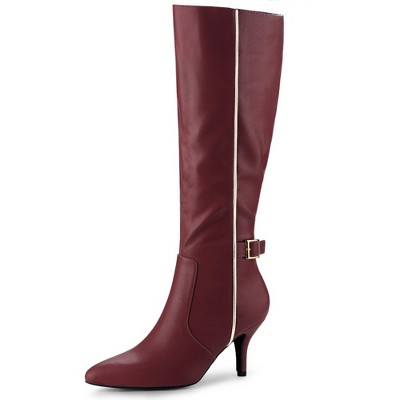 Allegra K Women's Pointy Toe Stiletto Heels Ankle Booties 8 Burgundy