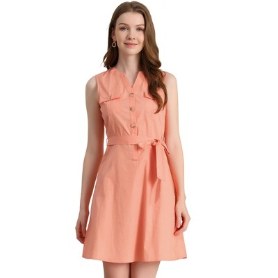 Allegra K Women's Floral Split Neck Drawstring Waist Sleeveless A-Line Summer Midi Dress