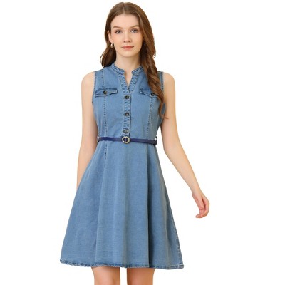 Allegra K Women's Floral Split Neck Drawstring Waist Sleeveless A-Line Summer Midi Dress Medium Light Blue