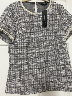 Allegra K Women's Round Neck Pearl Trim Short Sleeve Tweed Blouse - 2 of 4Allegra K Women's Round Neck Pearl Trim Short Sleeve Tweed Blouse - 3 of 4Allegra K Women's Round Neck Pearl Trim Short Sleeve Tweed Blouse - 4 of 4