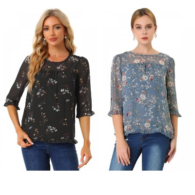 INSPIRE CHIC Women's Round Neck Ruffle 3/4 Sleeve Floral Print Chiffon Top - 2 of 4INSPIRE CHIC Women's Round Neck Ruffle 3/4 Sleeve Floral Print Chiffon Top - 3 of 4INSPIRE CHIC Women's Round Neck Ruffle 3/4 Sleeve Floral Print Chiffon Top - 4 of 4