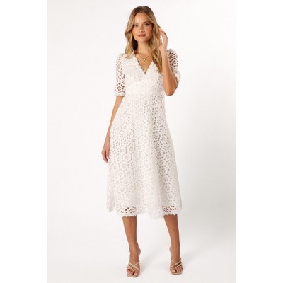 Pleated midi party dress match with high heels or sandals, delicate necklace, earrings, handbag, ring for a charming inspired look