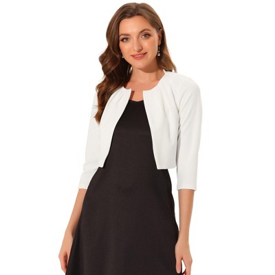 INSPIRE CHIC Women's Satin Elegant 3/4 Sleeve Open Front Cropped Bolero Shrug Cardigan X-Small White