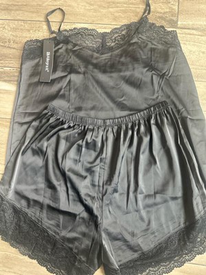 I absolutely love the feel of this satin lace, Cami top and shorts set. This cobalt blue is absolutely beautiful. It is true to size and so comfortable.