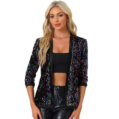 INSPIRE CHIC Women's Sequin Long Sleeve Glitter Shiny Party Bomber Jacket - 1 of 4