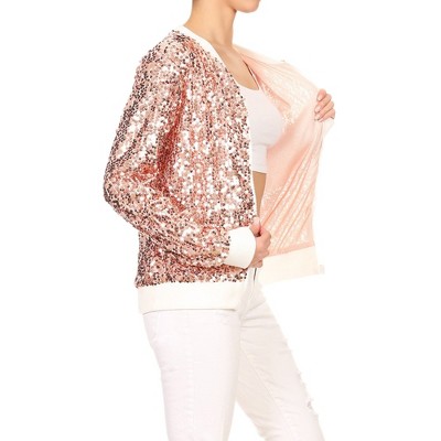 INSPIRE CHIC Women's Party Sequin Sparkle Long Sleeve Cropped Length Zipper Bomber Jacket