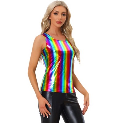 Allegra K Women's Party Metallic Short Sleeve Textured Shiny T-shirts