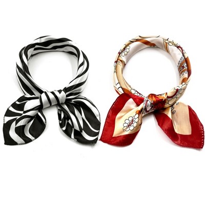 Allegra K Women's Silk Striped Lightweight Fashion Square Scarves Black&Black
