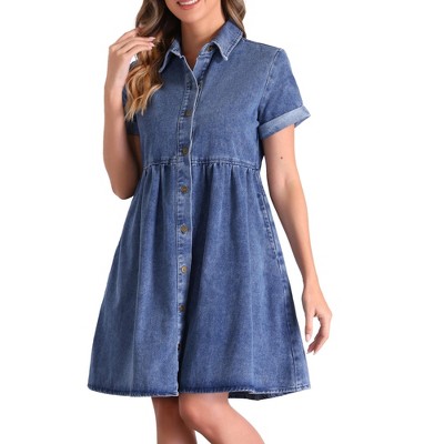 • Button Down Closure, Midi Length, Denim Shirt Dress