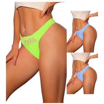 Allegra K Women's Smooth Elastic Lace Low Waist Solid Thongs 3 Packs