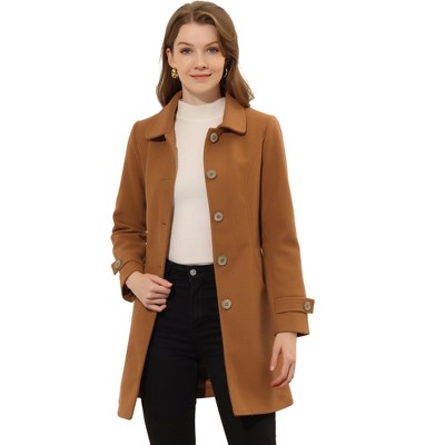 Allegra K Women's Stand Collar Double Breasted Hoodie Outerwear Winter Coat Khaki Small