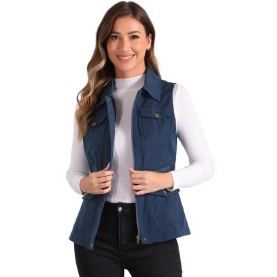 Allegra K Women's Stand Collar Lightweight Gilet Quilted Zip Puffer Vest Small Dark Blue