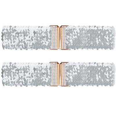 Allegra K Women's Stretchy Metal Interlock Buckles Sequins Decor Belts for Dress 1 Pc 90cm/35.43" Silver