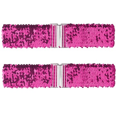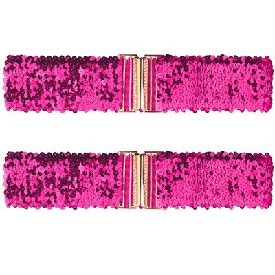 INSPIRE CHIC Women's Stretchy Skinny Shiny Sequins Decor Elastic Belts for Dress 1 Pc Rose Red 64cm/25.19"