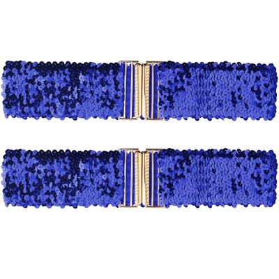 INSPIRE CHIC Women's Stretchy Skinny Shiny Sequins Decor Elastic Belts for Dress 1 Pc Royal Blue 64cm/25.19"