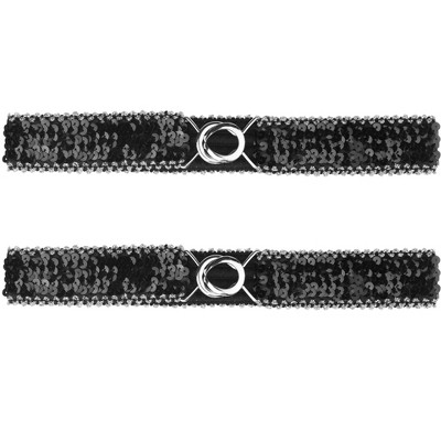 INSPIRE CHIC Women's Stretchy Skinny Shiny Sequins Decor Elastic Belts for Dress 1 Pc Silver Side Black 64cm/25.19"