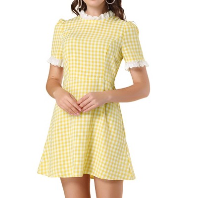 Allegra K Women's Summer Ruffled Sleeve A-Line Vintage Gingham Check Sundress Medium Yellow