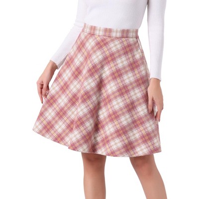 INSPIRE CHIC Women's Tartan Plaid High Waist Belted Vintage A-Line Midi Skirt Medium Light Pink
