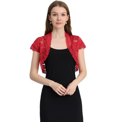 Opt for a decadent cover-up for your special occasions with this lace shrug. This stretchy lace cardigan offers the perfect balance to longer layers in a waist-defining cut with a tie front. Constructed in a classic shrug silhouette, this charming piece benefits from an open neck and elegant long sleeves with ruffles. Intricate design details include a satin binding around the front and hem and a floral lace design. Paired with a sleeveless dress, spaghetti strap, tank top, or simple off-shoulder top for an elegant and chic look.