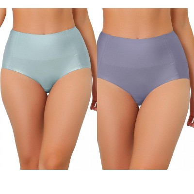 Allegra K Women's Tummy Control Unlined High Waist Breathable Hipster Underwear 3 Packs 2 Purple 1 Light Blue Large