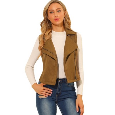 INSPIRE CHIC Women's Turn-Down Collar Flap Pockets Snap Button Faux Suede Jacket