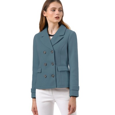Allegra K Women's Turn Down Collar Long Sleeve Single Breasted Winter Pea Coat Large Light Blue