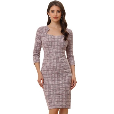 A: The dress is made from a blend of 98% polyester and 2% spandex, featuring a tweed texture.