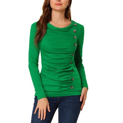 solid knitted buttons decor ruched top